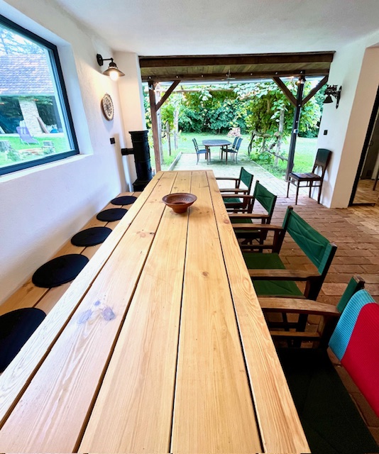 - Kinti fedett rész: Hűvös kártyázásra, a lugasban ülve az egész kert a tiétek.